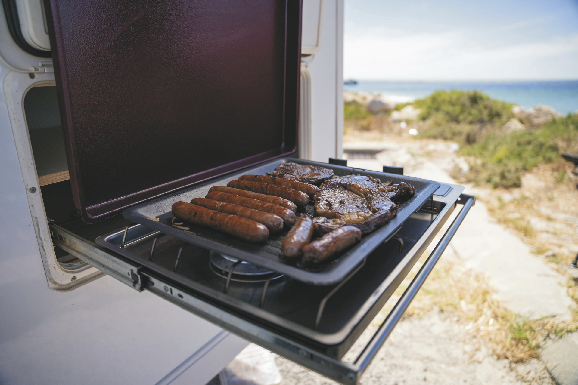 • Gaskocher innen sowie zusätzlich außen ausziehbarer Gaskocher